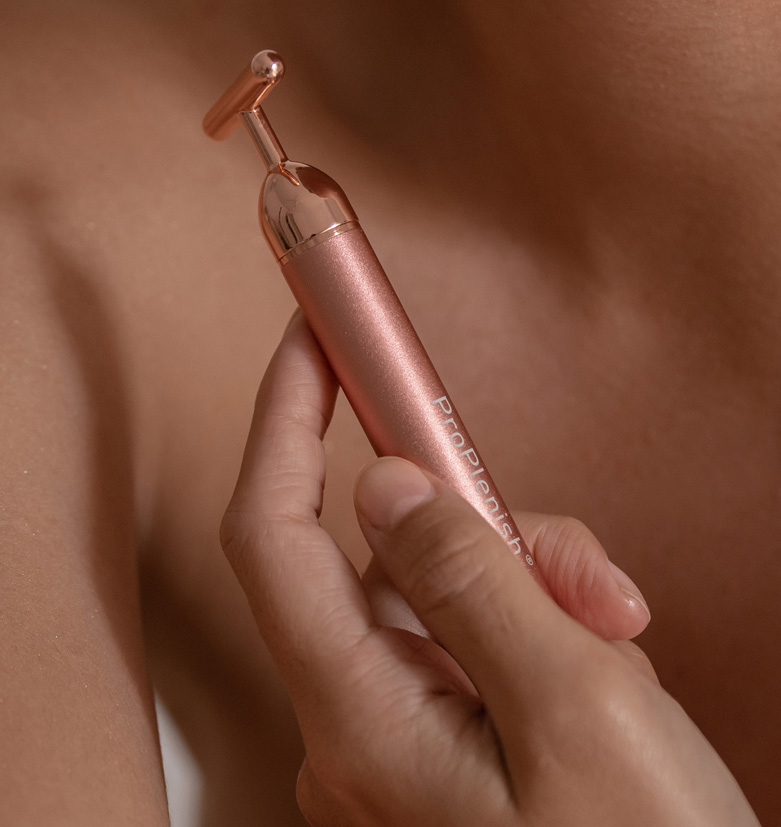 Rose gold 24k plated Sculpting T-Bar attachment for use with ProPlenish Micro-vibrating Handle (Sold separately).